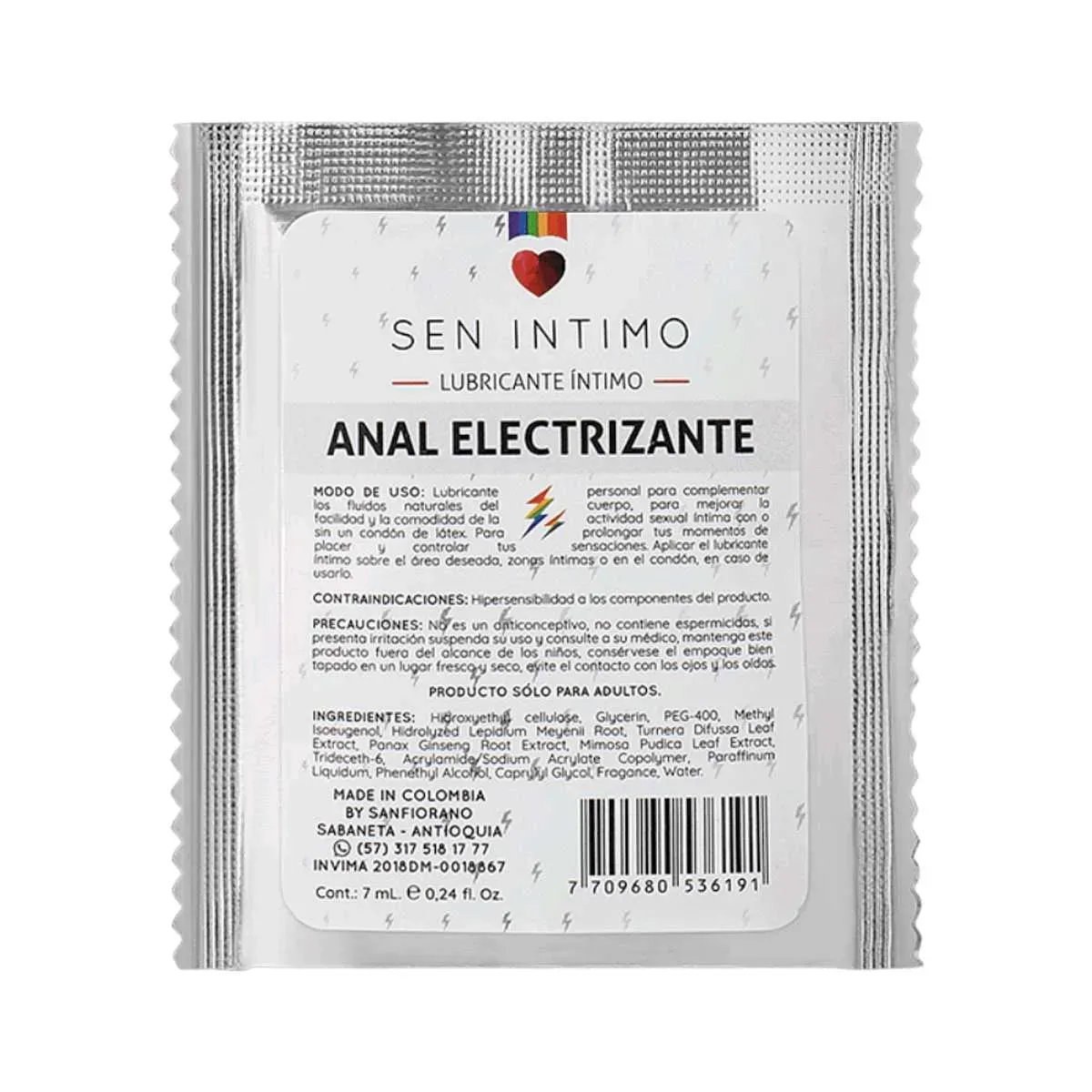 Lubricante Anal Electrizante Sachet x 7 ml Sen Íntimo